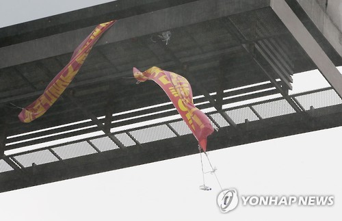 CJ대한통운 조합원 2명 여의도서 고공시위(종합)