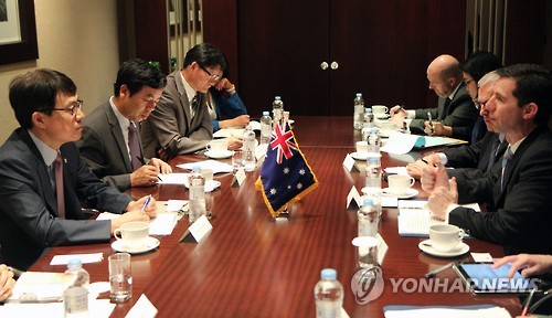 (서울=연합뉴스) 안승섭 기자 = 고영선 고용노동부 차관은 17일 서울 하얏트 호텔에서 사이먼 버밍엄 호주 교육훈련부 부장관을 만나 두 나라의 직업교육훈련 분야 협력방안을 논의했다고 고용부가 밝혔다.