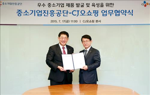 (서울=연합뉴스) 오예진 기자 = 중소기업진흥공단과 CJ오쇼핑은 최근 서울 서초구 CJ오쇼핑 본사에서 국내 우수 중소기업 제품의 세계화육성을 위한 업무협약을 체결했다고 19일 밝혔다.