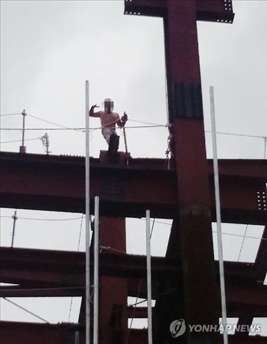 황씨는 철골 위를 뛰어다니며 고래고래 소리를 질렀고 금세 인파가 모였다. 철골 아래에는 공기 매트가 펼쳐졌다.
