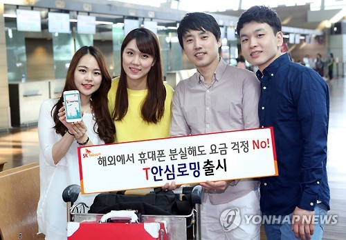 | △ '해외에서 휴대폰 분실해도 요금 걱정하지 마세요' (서울=연합뉴스) SK텔레콤이 고객이 해외에서 휴대전화나 유심(USIM) 분실 및 도난시 분실신고만으로도 음성 로밍 비정상 사용분에 대해 요금 감면을 받을 수 있는‘T안심로밍’서비스를 20일 출시한다고 밝혔다. 모델들이 이번 서비스 출시를 알리고 있다. (SK텔레콤 제공) |