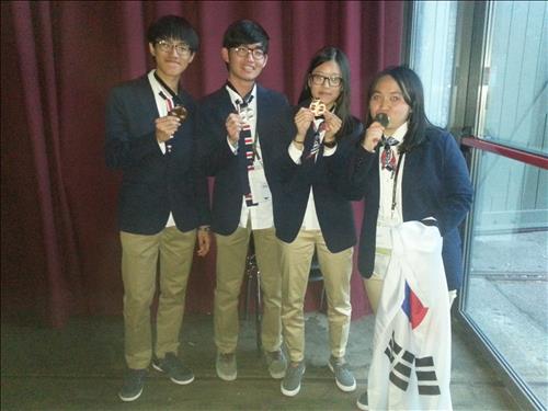 << 한국 대표팀 학생들, 왼쪽부터 석진현, 김민수(대구과학고3), 김민정(서울 하나고3), 임선호(경기과학고3)>>