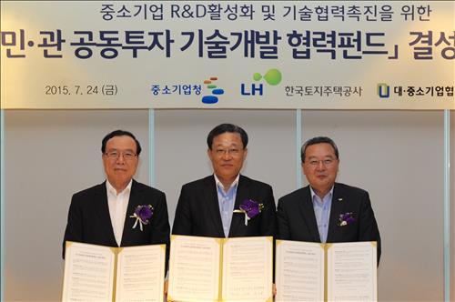 중소기업청과 한국토지주택공사(LH), 자동차 부품 기업인 디아이씨, 공조 분야 업체 오텍캐리어는 관련 중소기업의 성장을 위해 160억원 규모의 '민·관공동투자 기술개발(R&D) 협력펀드'를 조성하는 내용의 협약을 맺었다고 26일 밝혔다.