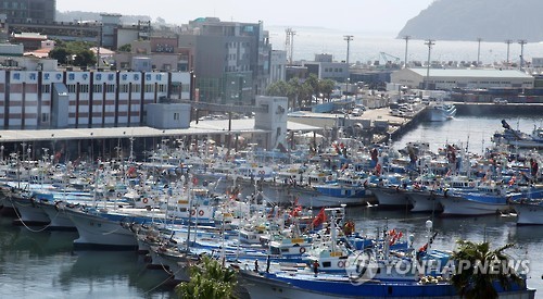 | △ 태풍 할롤라 북상…서귀포항으로 대피한 어선 (서귀포=연합뉴스) 고성식 기자 = 어선 등 선박들이 25일 제12호 태풍 할롤라의 북상으로 파도가 높게 이는 제주 남쪽 바다를 피해 서귀포항으로 대피해 있다. koss@yna.co.kr |