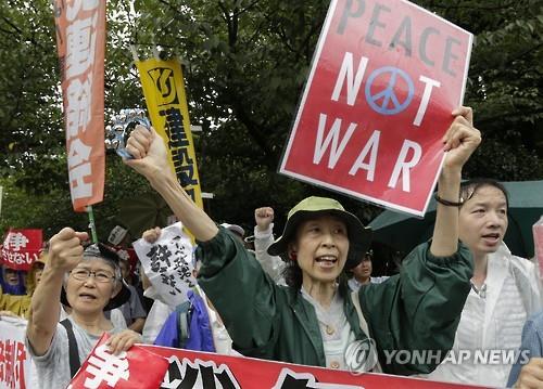 | △ 2015년 7월 16일 일본 국회 인근에서 안보법안 반대 시위가 열리는 모습(EPA=연합뉴스) |