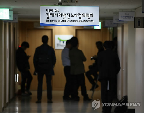 | △ 노사정 대화 재개를 놓고 정부·여당과 한국노총의 고민이 커지고 있다. 사진은 지난 4월 열린 제17차 노동시장구조개선 특위. (연합뉴스 자료사진) |