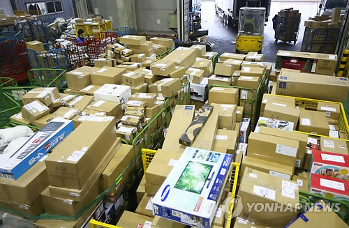 △ 세관검사장에 쌓인 해외직구 물품들 (연합뉴스 자료사진)