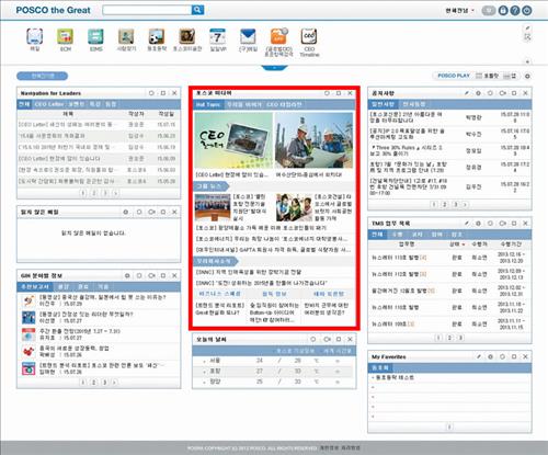 사내 인트라넷(EP) 첫 화면에 포스코미디어의 최신 콘텐츠를 모아볼 수 있는 고정형 포틀릿(사용자가 필요로 하는 정보나 지식을 모아 보여주는 맞춤형 메뉴)을 설치해 임직원 누구나 회사 정보를 손쉽게 찾아볼 수 있게 할 계획이다.