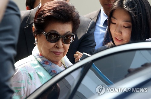 | △ 롯데 신동주·동빈 형제 친모 하츠코 여사 입국 (김포=연합뉴스) 김주성 기자 = 롯데그룹 신격호 총괄회장의 두 번째 부인이자 신동주 전 일본 롯데홀딩스 부회장과 신동빈 롯데그룹 회장 형제의 모친인 시게미츠 하츠코(重光初子·88) 여사가 30일 오후 김포공항을 통해 입국, 공항을 빠져나가는 승용차에 타고 있다. |