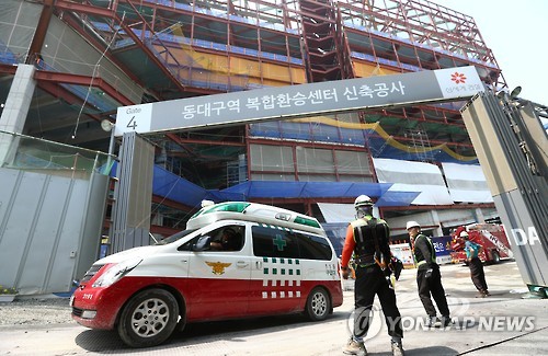 (대구=연합뉴스) 김선형 김준범 기자 = 동대구역 복합환승센터 공사장 바닥이 일부 무너지면서 12명이 추락해 부상했다.