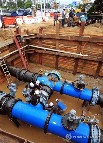 시 상수도사업본부는 800mm는 통수를 중단한 채 900mm 도수관로만 사용, 당일 오후 7시 10분부터 제한적으로 수돗물을 공급하고 있다.