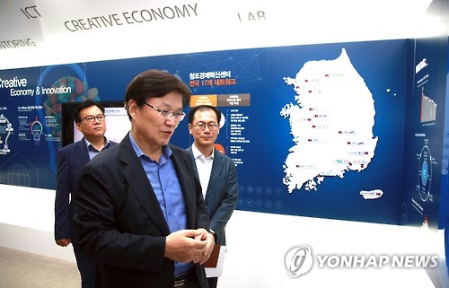 | △ 창조경제혁신센터 방문한 최양희 장관 (서울=연합뉴스) 최양희 미래창조과학부 장관이 3일 인천시 중구 공항로 인천국제공항 창조경제혁신센터 홍보관을 방문하여 운영 현황 및 이용자 애로사항 등을 현장점검 하고 있다. (미래창조과학부 제공) |