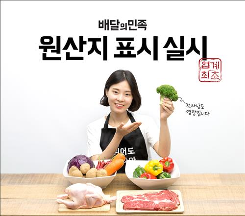 (서울=연합뉴스) 윤보람 기자 = 배달 애플리케이션 서비스인 배달의민족은 업계 최초로 배달 음식의 원산지를 표기한다고 7일 밝혔다.