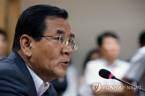| △ 김대환 전 노사정위원장 입장표명 회견 (서울=연합뉴스) 전수영 기자 = 노사정 대타협 무산의 책임을 지고 사퇴서를 제출했던 김대환 경제사회발전노사정위원회 전 위원장이 복귀, 7일 오전 정부서울청사 노사정위 대회의실에서 기자간담회를 열어 입장을 밝히고 있다. |