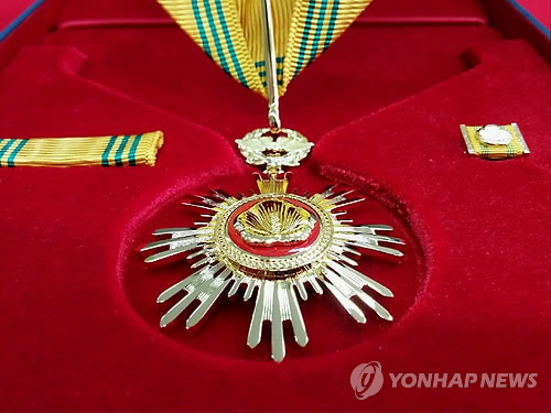 | △ (서울=연합뉴스) '국민훈장 동백장'. 2015.4.8 << 행정자치부 제공 >> tree@yna.co.kr |
