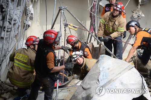 이 사고로 1층에서 물을 뿌리는 작업을 하던 손모(44)씨가 지하 2층으로 추락해 쏟아진 토사에 하반신이 매몰됐다.