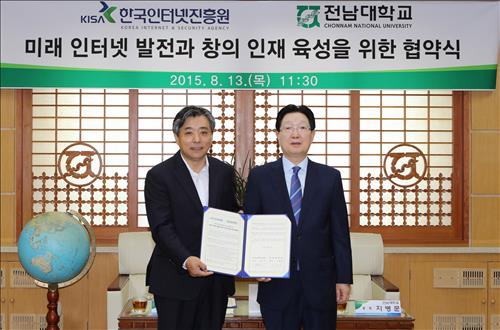 (서울=연합뉴스) 윤보람 기자 = 한국인터넷진흥원(KISA)은 전남대와 함께 '미래인터넷 발전과 창의 인재 육성을 위한 협약'을 체결했다고 13일 밝혔다.