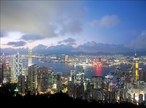 빅토리아 항구와 푸른 바다 사이에 심장부인 센트럴과 침사추이가 펼쳐져 있다.