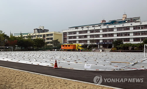 | △ 지난 2011년 석면 검출된 학교 운동장 (연합뉴스 자료사진) |