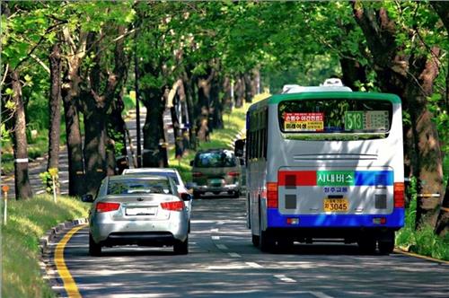 | △ 가로수길을 달리는 시내버스.<<청주시 제공>> |