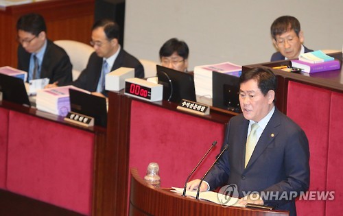 | △ 제안 설명하는 최경환 부총리 (서울=연합뉴스) 도광환 기자 = 18일 오전 국회 예결위회의장에서 열린 예산결산특별위원회 전체회의에서 최경환 부총리 겸 기획재정부 장관이 2014 회계연도 결산 및 예비비지출 승인에 대한 제안 설명을 하고 있다. |