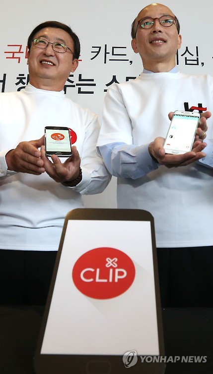 KT[030200]와 BC카드는 18일 오전 서울 광화문 KT 사옥에서 기자간담회를 열고 전국 11만여곳의 가맹점에서 신용·체크카드 2천500여종 등의 할인 정보를 제공하는 모바일 지갑 '클립'을 공개했다.