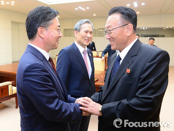 김 비서는 1942년 평남 안주에서 출생, 김일성종합대학을 졸업한 뒤 당중앙위원회 국제부에서 외교업무를 담당하다가 2007년 초 통일전선부 부장으로 임명됐다. 김 비서는 2007년 10월 남북정상회담을 성사시킨 북측 주역으로 알려졌다.북한의 대남통인 김양건(오른쪽) 노동당 대남 비서 겸 통일전선부장이 29일 오전 교통사고로 사망했다. 사진은 지난 8월 25일 남북 고위급 접촉을 마친 홍용표 통일부 장관과 북측 대표인 김 비서. 2015.08.25 <사진제공=통일부> 포커스포토