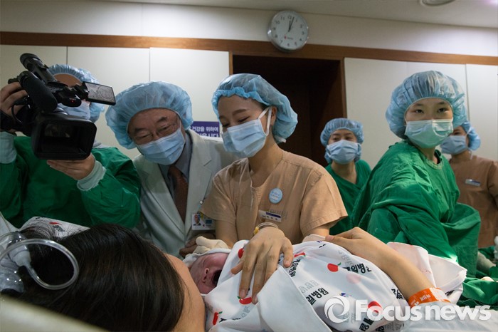 (서울=포커스뉴스) 2016년 병신년(丙申年) 새해가 밝은 1일 새벽 서울 중구 제일병원에서 윤형섭 씨와 권남희 씨 사이에서 3.28kg의 건강한 딸 '꼬미'(태명)가 태어나서 힘찬 울음소리를 내고 있다.