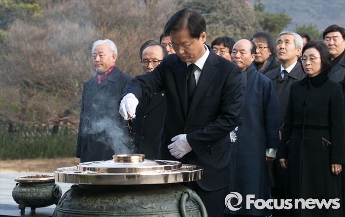 (서울=포커스뉴스) 병신년(丙申年) 새해 첫 날인 1일 오전 동작구 국립서울현충원에서 천정배 국민회의 창당추진위원장이 현충탑 참배를 하고 있다.