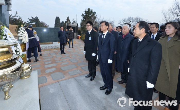 (서울=포커스뉴스) 병신년(丙申年) 새해 첫 날인 1일 오전 동작구 국립서울현충원에서 천정배 국민회의 창당준비위원장이 김대중 전 대통령 묘역 참배를 하고 있다.