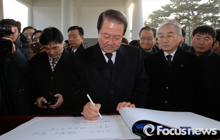 (서울=포커스뉴스) 병신년(丙申年) 새해 첫 날인 1일 오전 동작구 국립서울현충원에서 통합신당을 추진 중인 박주선 무소속 의원이 현충탑 참배를 마친 뒤 방명록을 작성하고 있다.