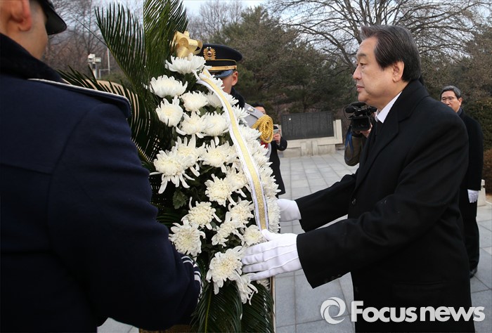 (서울=포커스뉴스) 병신년(丙申年) 새해 첫 날인 1일 오전 동작구 국립서울현충원에서 김무성 새누리당 대표가 박정희 전 대통령 묘역 참배를 하고 있다.