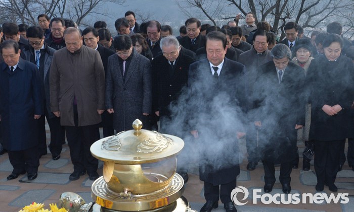 (서울=포커스뉴스) 병신년(丙申年) 새해 첫 날인 1일 오전 동작구 국립서울현충원에서 통합신당을 추진 중인 박주선 무소속 의원이 김대중 전 대통령 묘역 참배를 하고 있다.