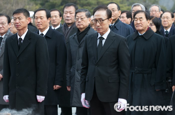 (서울=포커스뉴스) 병신년(丙申年) 새해 첫 날인 1일 오전 동작구 국립서울현충원에서 이명박 전 대통령이 현충탑 참배를 하고 있다.