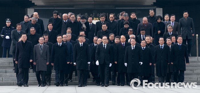 (서울=포커스뉴스) 병신년(丙申年) 새해 첫 날인 1일 오전 동작구 국립서울현충원에서 이명박 전 대통령이 현충탑 참배를 마친 뒤 나서고 있다.
