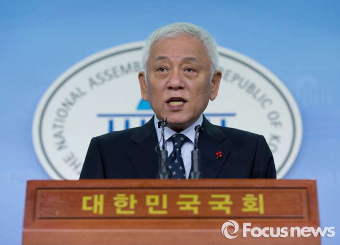 (서울=포커스뉴스) 김한길 더불어민주당 전 공동대표가 3일 오전 서울 여의도 국회 정론관에서 탈당 선언 기자회견을 하고 있다.