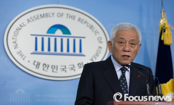 (서울=포커스뉴스) 김한길 더불어민주당 전 공동대표가 3일 오전 서울 여의도 국회 정론관에서 탈당 선언 기자회견을 하고 있다.