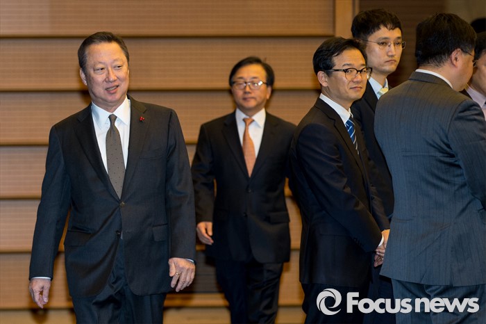 (서울=포커스뉴스) 박용만 대한상공회의소 회장이 4일 오전 서울 중구 대한상공회의소에서 열린 신녀인사회에 자리하기 위해 행사장으로 들어서고 있다.