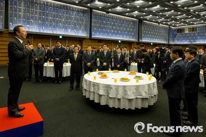 (서울=포커스뉴스) 박용만 대한상공회의소 회장이 4일 오전 서울 중구 대한상공회의소에서 열린 신녀인사회에 자리해 신년사를 하고 있다.