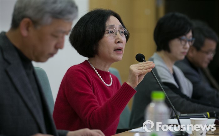 (서울=포커스뉴스) 5일 오후 서울 여의도 국회 의원회관에서 민주사회를 위한 변호사모임, 한국정신대문제대책협의회 등 주최로 열린 긴급진단, 2015년 한일 외교 장관 회담의 문제점 토론회에 참석한 양현아 서울대 법학과 교수가 발언하고 있다.