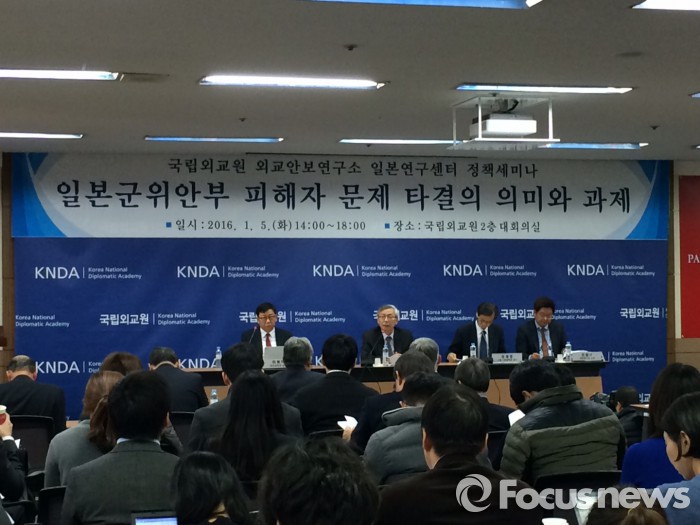 앞서 이번 정책세미나에서 인사말을 맡은 윤덕민 국립외교원 원장은 위안부 문제 협상 타결에 대해 “어떤 합의보다 진전된 내용의 합의”라고 평가했다.