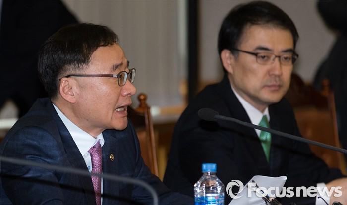 (서울=포커스뉴스) 북한이 수소탄 실험에 성공했다고 발표한 6일 오후 서울 중구 은행회관에서 열린 긴급 거시경제금융회의에 참석한 정찬우(왼쪽) 금융위 부위원장이 모두발언 하고 있다.