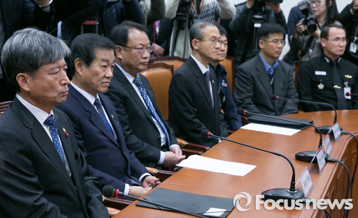 (서울=포커스뉴스) 6일 오후 서울 여의도 국회 새누리당 대표최고위원실에서 열린 북한 핵실험 관련 긴급대책회의에 정부 외교안보 관계부처 차관들이 참석해 있다. 왼쪽부터 황부기 통일부 차관, 황인무 국방부 차관, 한기범 국정원 1차장, 임성남 외교부 1차관.