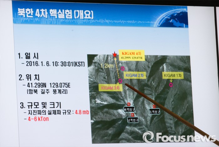 (대전=포커스뉴스) 북한이 수소탄 핵실험을 성공했다고 발표한 가운데 6일 오후 대전 유성구 한국지질자원연구원 지진연구센터에서 신진수 국토지질연구본부장이 북한 수소탄 실험에 대한 조사결과 브리핑을 하고 있다.