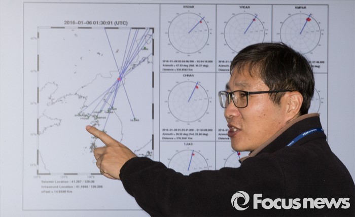 (대전=포커스뉴스) 북한이 수소탄 핵실험을 성공했다고 발표한 가운데 6일 오후 대전 유성구 한국지질자원연구원 지진연구센터에서 신진수 국토지질연구본부장이 북한 수소탄 실험에 대한 조사결과 브리핑을 하고 있다.