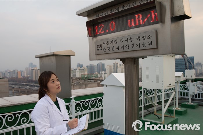 (서울=포커스뉴스) 북한이 수소탄 실험에 성공했다고 발표한 6일 오후 서울 성동구 한국원자력안전기술 서울지방방사능측정소에서 연구원이 방사능 오염 여부를 측정해 기록하고 있다.