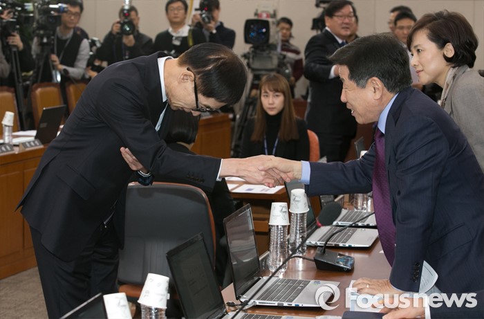 (서울=포커스뉴스) 이준식 사회부총리 겸 교육부 장관 후보자가 7일 오전 서울 여의도 국회에서 열린 인사청문회에 참석해 야당 의원들과 인사하고 있다.