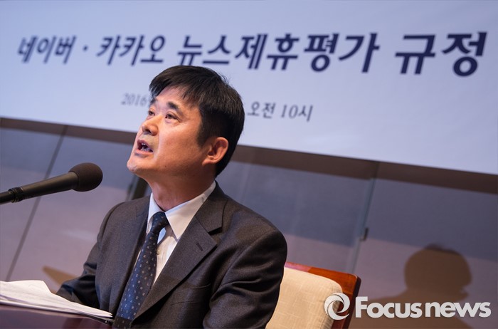 '네이버-카카오 뉴스 제휴 및 제재 심사 규정' 발표하는 김병희 제 2 소위원장
