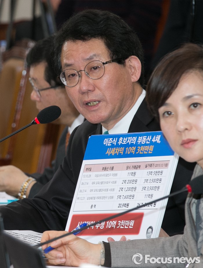 (서울=포커스뉴스) 7일 오전 서울 여의도 국회에서 열린 이준식 사회부총리 겸 교육부 장관 후보자 인사청문회에 참석한 유기홍 더불어민주당 의원이 이 후보자에게 부동산 투기 의혹 관련 질의하고 있다.
