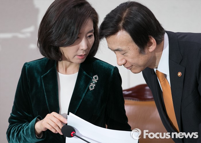 (서울=포커스뉴스) 7일 오후 서울 여의도 국회에서 북한의 수소탄 핵실험 발표 등에 관한 긴급 현안보고를 위해 열린 외교통일위원회 전체회의에 참석한 윤병세(오른쪽) 외교부 장관과 나경원 외통위원장이 대화하고 있다.